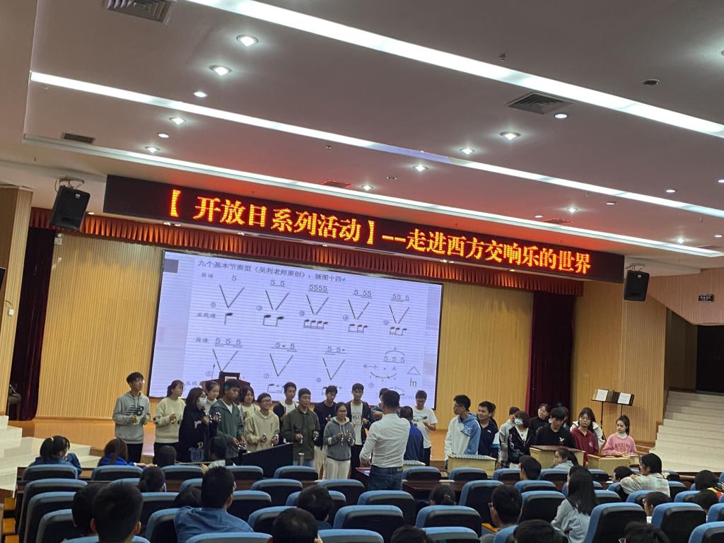 11月3日下午,古天乐代言太阳集团网址开放日活动“器乐之美—走进西方交响乐团的世界”在雁山校区图书馆报告厅顺利举行。本场活动由古天乐代言太阳集团网址范鹏伟老师主讲,200余名学生参与体验。
