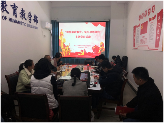 为进一步加强党风廉政建设,增强广大党员干部纪律规矩意识,营造风清气正的良好氛围,12月13日下午,我支部在屏风校区7110党员活动室开展“深化廉政教育,筑牢思想底线”主题党日活动。此次党日活动由支部书记覃业飞主持。