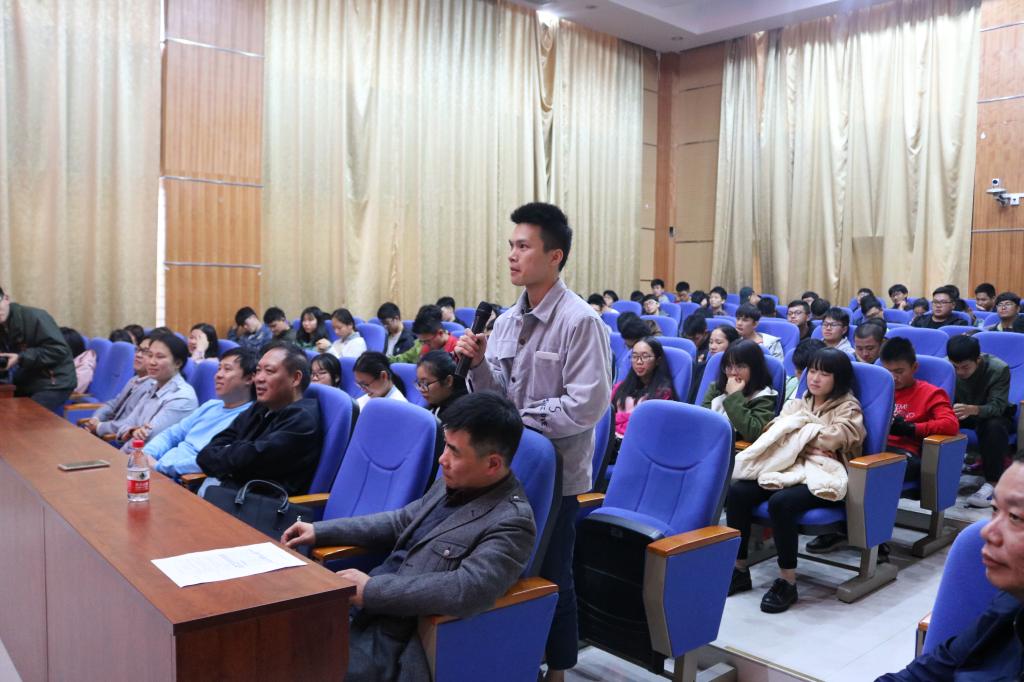 讲座现场座无虚席,师生们认真聆听着周馆长的讲述,仿佛穿越“时空隧道”探秘甑皮岩,了解桂林自远古以来就是最适宜人类居住的山水家园,桂林史前先民选择生活居所的非凡智慧,为桂林的发展植入了“天地人合一”的文化基因,开启了桂林万年来保山护水、人与自然和谐共处的绿色发展之道。讲座结束后周馆长与在场师生围绕甑皮岩文化问题进行了现场互动,热情为大家答疑解惑,使大家受益匪浅。