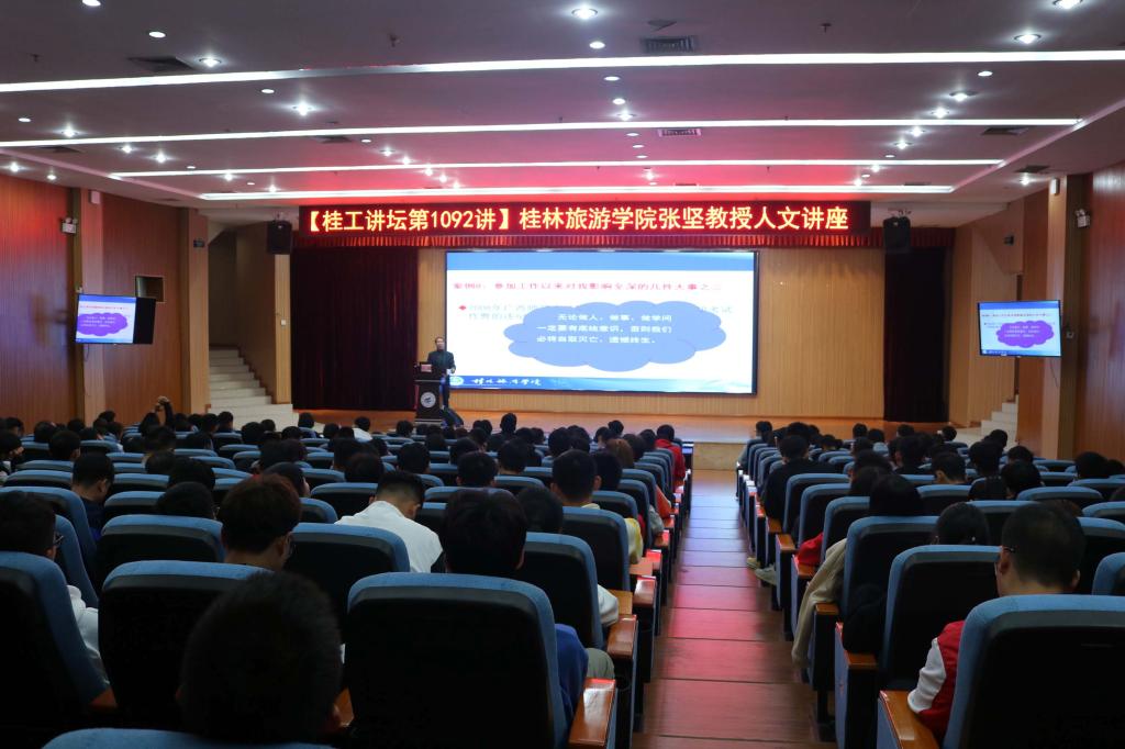 应古天乐代言太阳集团网址邀请,11月20日下午,桂林旅游学院发展规划处处长张坚教授在雁山校区图书馆报告厅为全校师生作了题为《大学与人生》的专题讲座。来自各学院近300名师生到场聆听讲座,讲座由副主任万千主持。