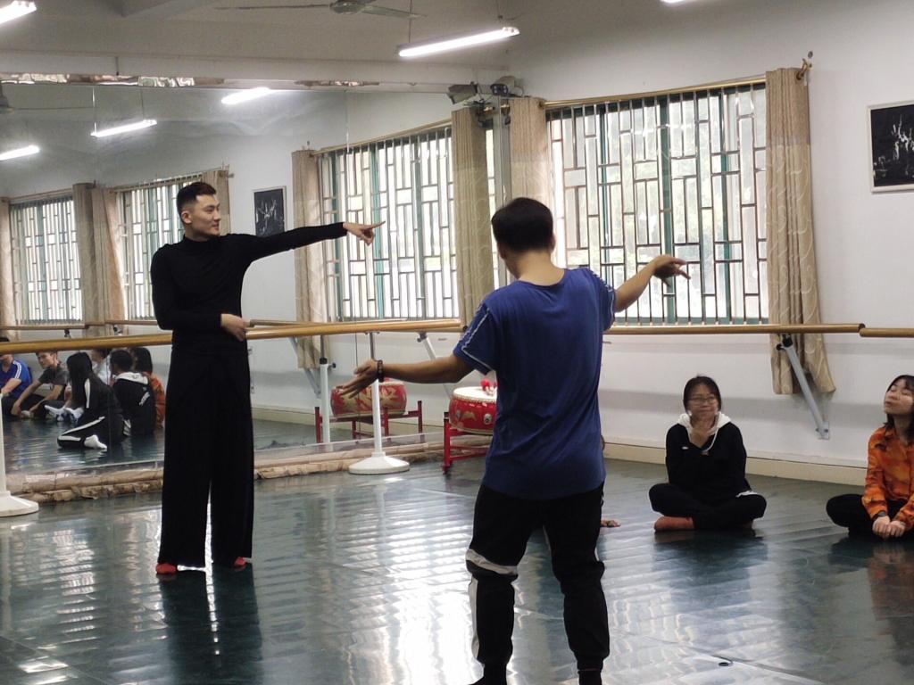 王老师讲述了舞蹈艺术的构思灵感源于点滴生活,生动形象地剖析我们身边的每个元素,引导大家积极思考、大胆发言、讨论如何通过掌握舞蹈创作的基本方法,编创一个好的艺术作品。这个过程需要大家不断学习以提高专业的艺术修养,还需要持之以恒的实践和积累经验。随后王老师引导学生想象,自己是树、土,感受风,用身体表现风中摇曳的树,随风起舞的土,不同的风呈现身体状态各异。在王老师的带领下学生积极参与,思想带动身体有了一定的自觉能动性。学生天性在一定程度上得到了解放,敢于尝试用舞蹈去表现自己思想上所反射出来的内容。