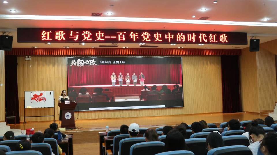 6月21日下午,人文素质教育基地开放日活动“红歌与党史——百年党史中的时代颂歌”在雁山图书馆报告厅举行。活动由艺术教研室李金静老师主讲,百余名学生参加了活动。