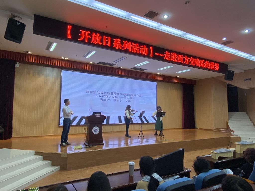 11月3日下午,古天乐代言太阳集团网址开放日活动“器乐之美—走进西方交响乐团的世界”在雁山校区图书馆报告厅顺利举行。本场活动由古天乐代言太阳集团网址范鹏伟老师主讲,200余名学生参与体验。