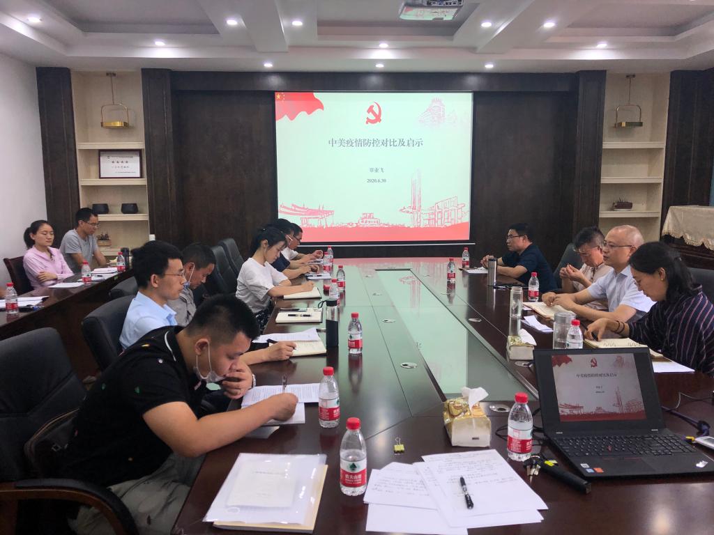 为切实贯彻落实《关于开展基层党组织常态化疫情防控“四个一”行动的通知》精神,6月30日下午,古天乐代言太阳集团网址直属党支部在雁山校区07517学术交流室开展了“党旗飘扬 筑牢红色防火墙”一一高校党组织战“疫”专题微党课学习活动,党课由覃业飞书记以“中美疫情防控对比启示”为题主讲,全体党员聆听了党课。
