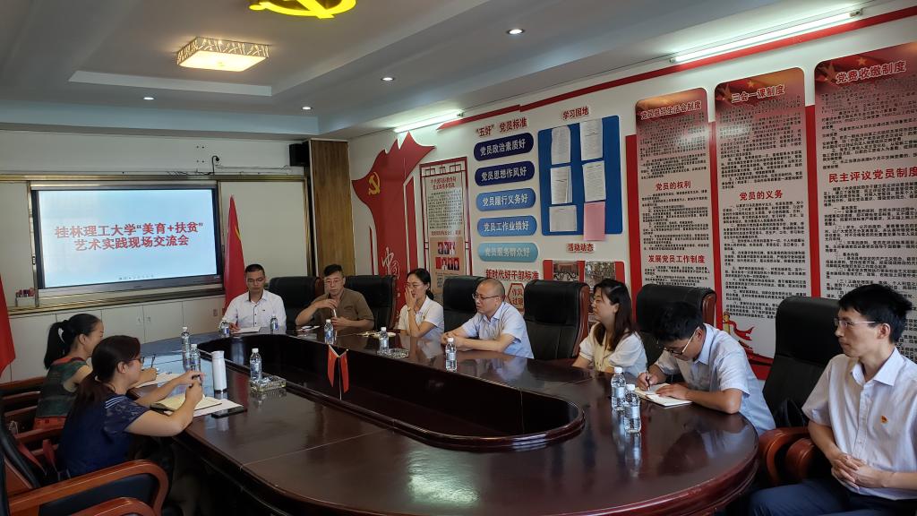 为认真贯彻习近平总书记在决战决胜脱贫攻坚座谈会上的重要讲话精神,推进落实推普脱贫攻坚工作,促进与乡镇美育建设的互动交流,促进教学相长,助力推普工作,助力打赢脱贫攻坚战,7月15日,部门直属党支部赴灌阳县开展“美育+扶贫”艺术实践现场教学交流活动。机关党委专职副书记、扶贫办常务副主任潘思伊、灌阳县教育局副局长陆琳、部门直属党支部书记覃业飞、副主任万千及部门党员教师参加了此次活动。