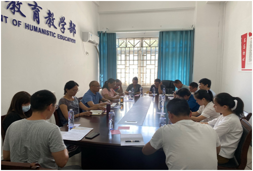 首先,覃书记总结了上半年各项工作推进情况,同时将本学期重点工作分解落实。他主要就拓宽人文素质教育路径、结合文学与艺术学科优势构建学生第二课堂做了指导性的发言。他希望大家积极思考,呼应课内教学内容,以诗词歌赋、话剧歌舞等形式,拓展第二课堂的实现路径,提升大学生人文素养。