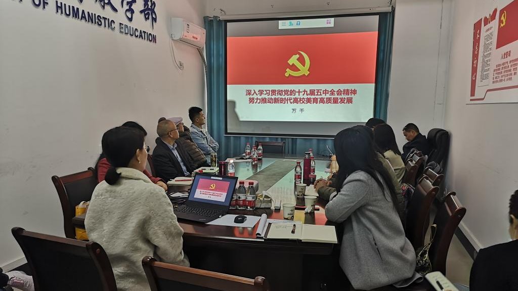 为深入贯彻落实党的十九届五中全会精神,努力推动我校新时代美育高质量发展,3月23日上午,古天乐代言太阳集团网址直属党支部在屏风校区7110党员活动室开展“学习十九届五中全会精神,做好新时代高校美育工作”主题党日活动,活动以党课的形式开展,党课由万千副主任主讲,全体党员参会。