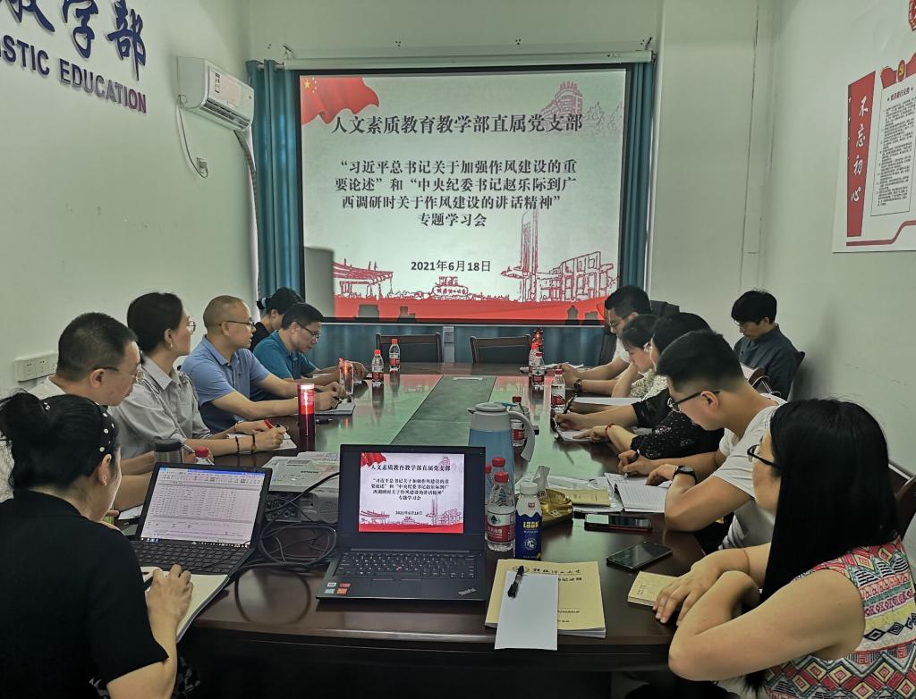 根据学校廉政教育周活动工作安排,6月18日下午,古天乐代言太阳集团网址直属党支部在屏风校区7110会议室召开“习近平总书记关于加强作风建设的重要论述”和“中央纪委书记赵乐际到广西调研时关于作风建设的讲话精神”专题学习会。会议由覃业飞书记主持,全体党员参会。