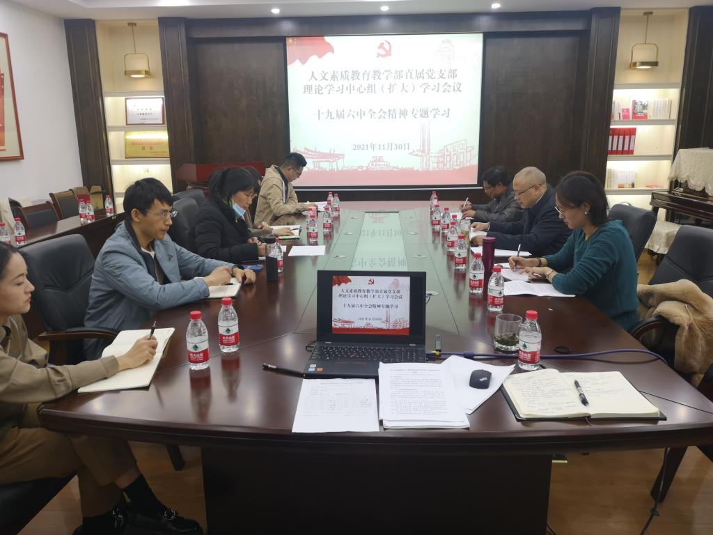 最后,覃业飞作出总结,我们要深刻认识十九届六中全会的重要意义和《决议》的深刻内涵,以学习贯彻全会精神为重点巩固党史学习教育成果,用党的历史经验启迪智慧、坚定信念,坚定不移贯彻党的教育方针,以学生发展为中心,不断明确教育的政治方向,并提出四点今后的美育工作方向:一是要完善大学语文改革,使其兼备工具性;二是要思考如何推进全校美育工作,找到有效的实施路径,不断改革创新;三是要思考如何通过课外活动提升学生审美素养;四是要逐步建设和丰富人文素质资源库。他强调,中心组成员是部门骨干核心,大家的所思所想对推动部门工作有很大帮助,要自觉提高政治站位,自觉抓好全会精神的贯彻落实,先学一步、学深一层,力求用全会精神统一思想、统一意志、统一步调、统一行动。