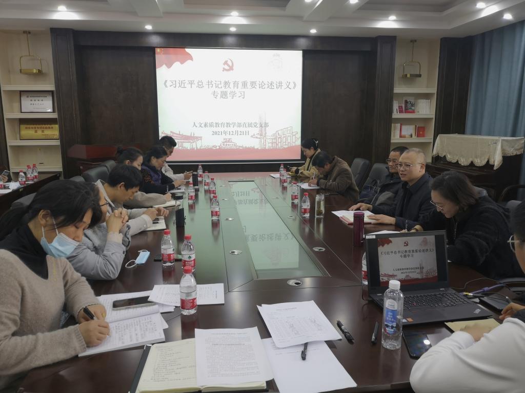 为认真学习贯彻习近平总书记对教育工作的重要论述,提升古天乐代言太阳集团网址教育教学质量,12月21日,古天乐代言太阳集团网址在雁山校区07517会议室召开《习近平总书记教育重要论述讲义》专题学习会,会议由覃业飞主持,全体党员参加。