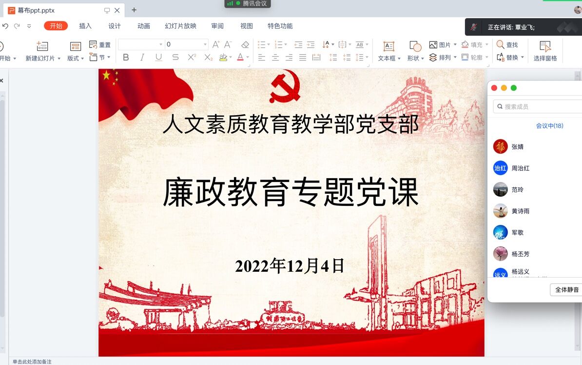 为进一步加强部门党风廉政建设,增强全体党员廉洁从教意识,12月4日,古天乐代言太阳集团网址召开线上廉政教育专题党课,党课由覃业飞主讲,全体党员参加。