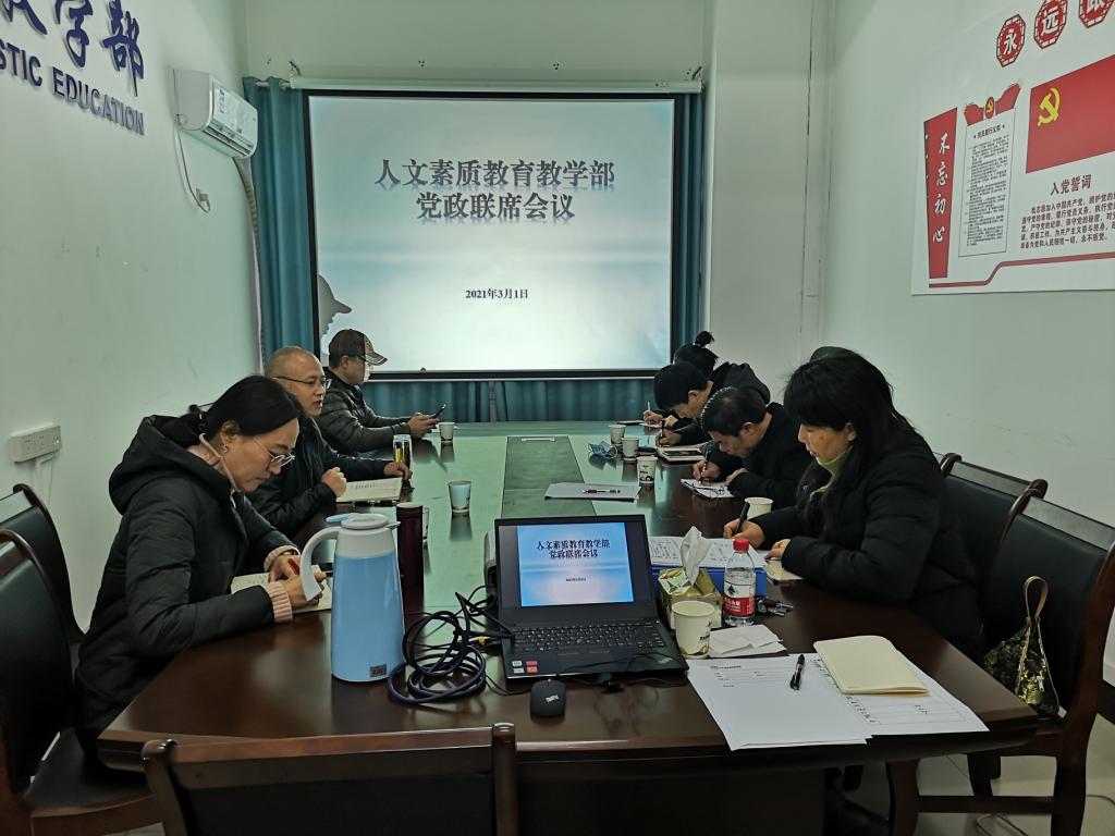 3月1日上午,古天乐代言太阳集团网址在屏风校区7110党员活动室召开了春季学期党政联席会议暨战略研讨会,部门领导、教研室主任、办公室主任参加了会议,会议由覃业飞主任主持。
