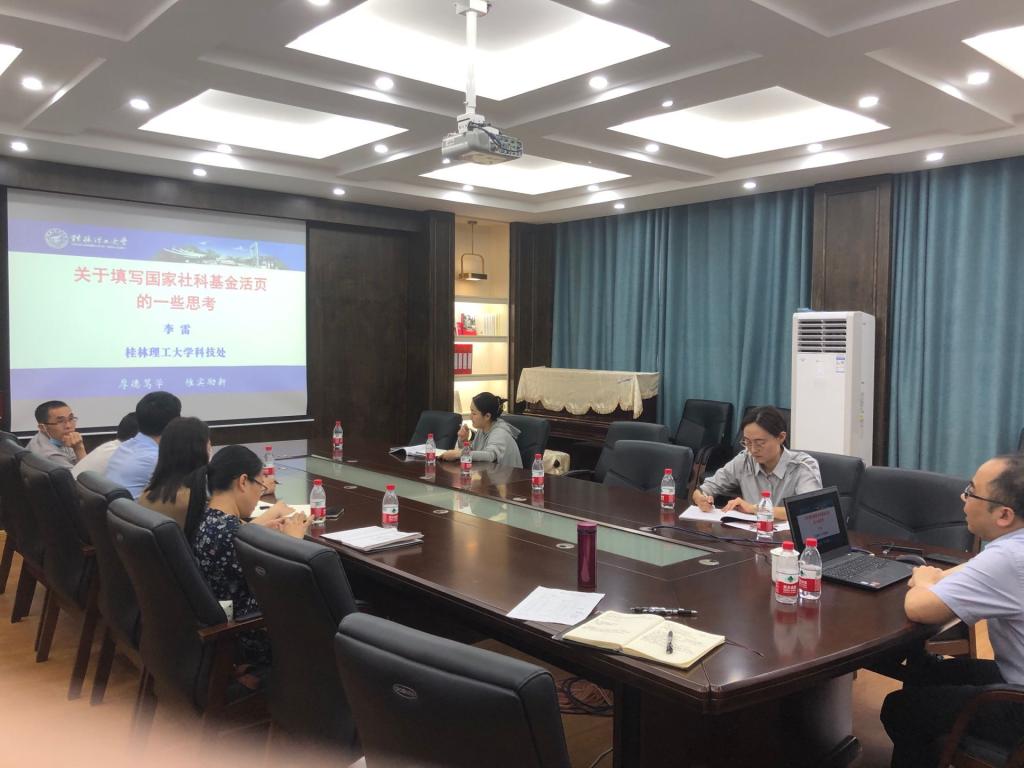 2021年5月11日下午于雁山07517会议室,围绕国家社科基金及广西社科奖申报主题,邀请了学校科技处副处长李雷教授为部门中青年教师进行科研培训。讲座由部门副主任万千主持。