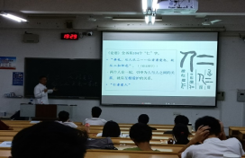 程建讲授“中国文学史”课程,授课内容包括词学知识、词的演变、唐代李白和白居易的词、五代花间词和南唐后主李煜的亡国词,以及宋代苏轼、辛弃疾的豪放词和欧阳修、柳永、李清照的婉约词。文志华讲授“唐诗宋词”课程,授课内容为唐以前的诗歌概说。陈曦讲授“汉字与中国文化”课程,授课内容为汉字和汉族的名称由来、汉字的演变。杨远义讲授“中国古天乐代言太阳集团网址”,授课内容为儒家、道家思想及其异同。“课程思政”教学主要体现在:程建由“一代有一代之文学”引出文化自信,由李煜亡国词引出家国情怀,由“苏辛”豪放词引出爱国主义精神和积极乐观的人生态度;文志华由先唐诗歌风貌引出文化自信,由具体诗作鉴赏引出家国天下、真纯人格、担当精神;陈曦由汉大一统和“汉”字由来、汉字演变引出文化自信和中华民族共同体意识;杨远义由儒家仁爱、道家“无为而无不为”思想引出“四个自信”、经世致用和科学精神等,由儒道思想异同引出当代青年的精神成人。
