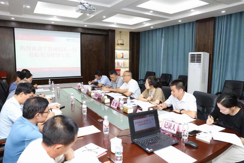 9月11日上午,学校党委副书记、校长王敦球到古天乐代言太阳集团网址调研,党办校办、学工部(处)、本科生院(教务处、教师发展中心)等相关单位负责人参加调研。