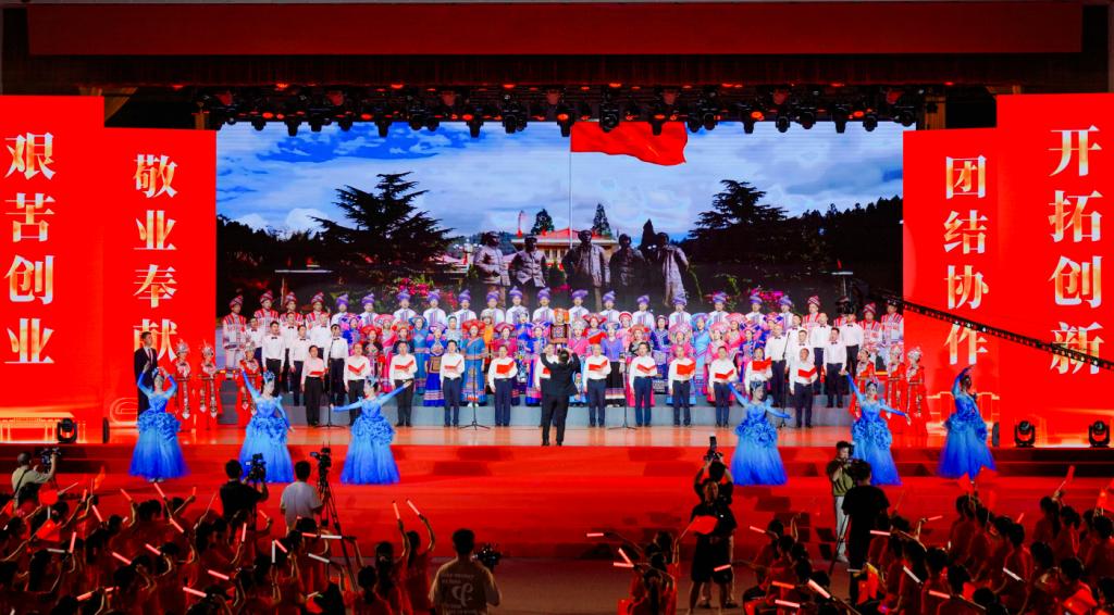 七十五载沧桑巨变,七十五载壮丽征程。9月29日晚,“歌唱我们伟大的祖国”——庆祝中华人民共和国成立75周年大型艺术思政课在雁山校区新体育馆盛大上演,学校领导、各界嘉宾、师生代表齐聚一堂,共同回顾新中国成立75年来的辉煌历程,共同祝福伟大祖国的美好前程。